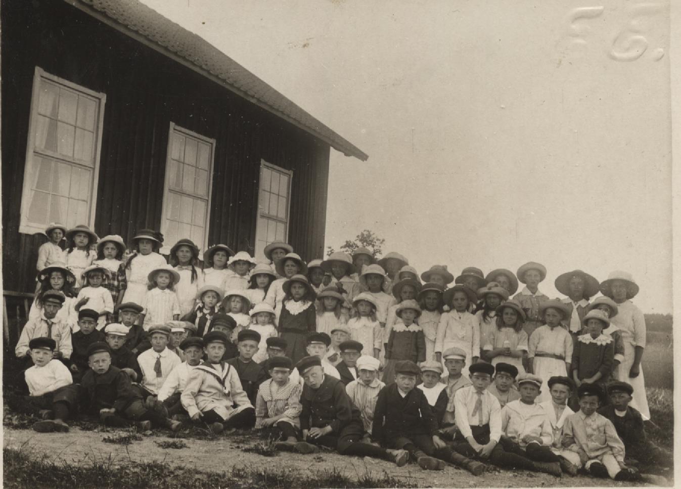 Det var i grevens tid jag frågade mina föräldrar på de gamla fotona. Men det var inte för sent. Min mor Anna hade ett halvår kvar att leva. Inte annat än att de visste så levde fotografen också. Det var år 1982. Så pappa Davids 90-årsdag hade hon varit med och firat. Den lilla födelseboken finns i min ägo och vissa namn hann jag fråga på. Vi rör oss på 1800-talets mitt och slut nu. Ett andligt arv går inte att ärva men väl dess påverkan. Jag ville ha detta vykortet och fick det. Nu gäller förstoringsglas! Går det att hitta någon jag känner igen? Nej, jag frågade aldrig på namn den gången…