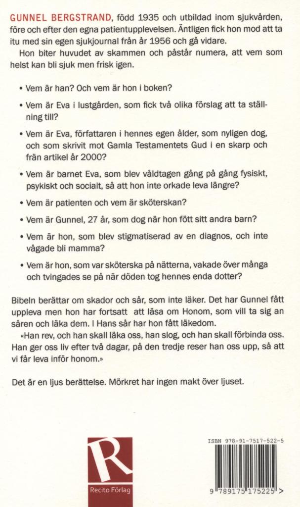 Den sitter fortfarande där efter alla år och är kanske ett inklämt diskbråck. Det är inte manodepressiv psykos! Och nu är jag inte kavat längre utan bara klen. Och visar baksidan av berättelsen/boken.