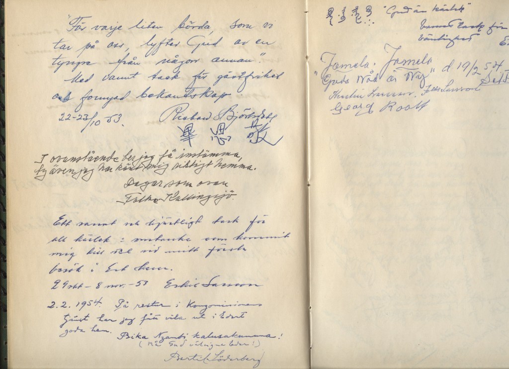 Första sidan i hemmets Gästbok har Gunde Raneskog och hans fru Maj längst ner. Raneskog var pastor i Trollhättans Missionförsamling och den lilla församlingen i Norra Björje var en utpost. Senare blev han distriktsföreståndare och tog emot mig som elev år 1954 till ”Bibel och Evangelistkurs” under en månad och även en ny kurs år 1959 efter mitt livs stora trauma år 1956. Det är en mycket viktig bibellärare i mitt liv samtidigt med distriktsföreståndare Nils Engmyr. En detaljerad undervisning om Tabernaklet i öknen fick jag först av missionär Wilhelm Bergling i slutet av 60-talet.
