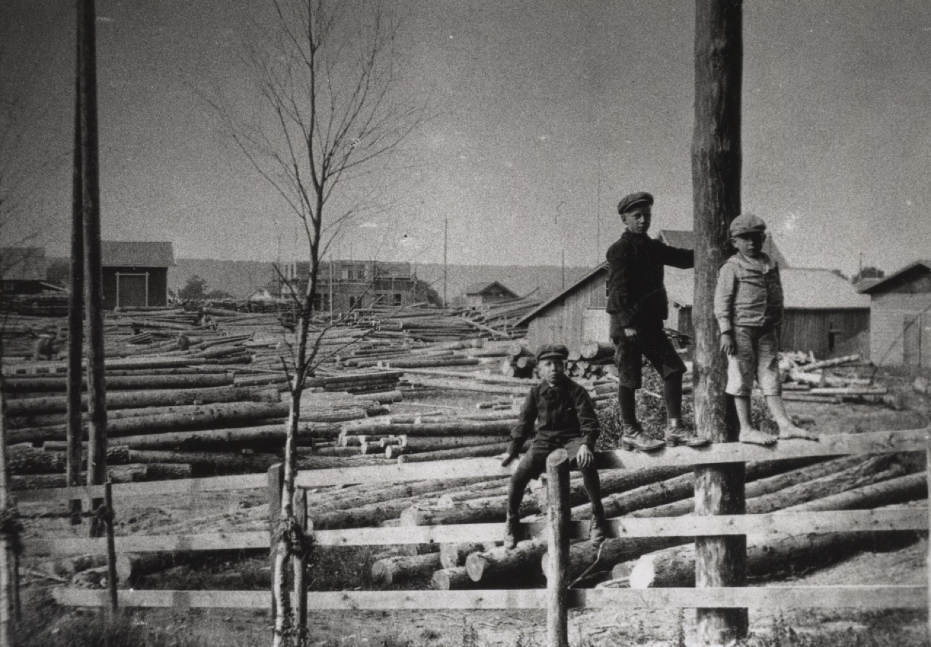 Bröderna Georg och Birger Lindahl fotograferade sågverket som låg till vänster om järnvägen efter en storm år 1917, då stora delar av skogen blåste ned. Detta foto har betytt så mycket för mig under tiden jag läst om tabernaklet i öknen. I min barndom var detta en förbjuden lekplats att springa på högarna av stockar som kunde komma i rullning. Mitt blivande föräldrahem syns i bakgrunden som stomme. Längst bak Hunneberg.