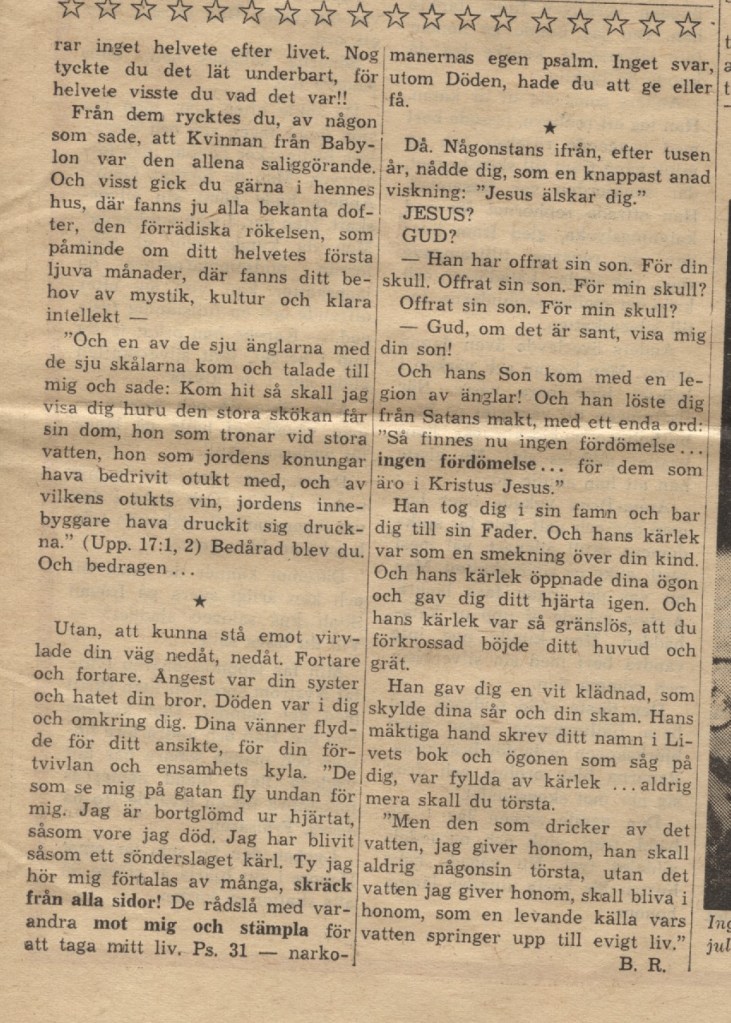 Runt år 2000 fick vi två nya bibelöversättningar och jag ville ut på nätet för att få möta unga, som aldrig hört något om kristen tro. Då kom hennes undervisning om Google. Om någon ville veta något om blodet, så var det bara att söka där. Sen skulle de komma till mitt namn, att jag har en berättelse.